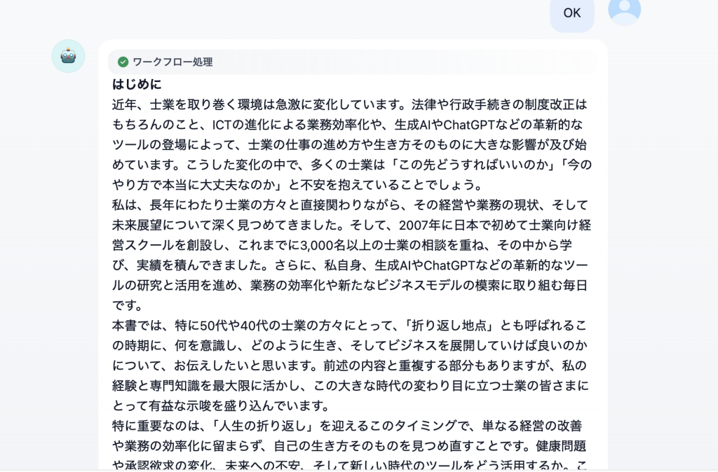 セミナーの音声データと著者情報をアップロードするだけで、Kindle出版にそのまま使える原稿が自動生成されます。専門性の高い内容も、話し言葉から自然な文章へと自動で整形。編集も不要なレベルの完成度で、誰でも簡単に書籍化が可能です。